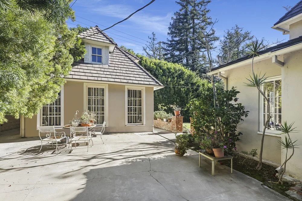 Classic two story 1923 Brentwood Park Traditional perched above the street on a sun-filled knoll affording great privacy, lovely tree-top views and peek of the ocean. Situated south of Sunset on a broad corner lot with sweeping frontage and towering old growth trees, this property affords a true country lifestyle. Available for the first time in 56 years, this time-honored home sits on a 17,149 Sq Ft lot and is close to the Brentwood Country Mart and bike path. Gracious entry leads to a luminous formal living room with fireplace, well-detailed formal dining room and cozy den. 4 bedrooms and 2½ baths plus a detached structure that could become a guest house or studio. Hardwood floors, crown mouldings, wainscoting, and other Traditional details throughout add character and charm to this warm and inviting home. Rare opportunity to restore or expand a timeless home or to build a magnificent estate with lovely vistas in the most desirable Westside location.