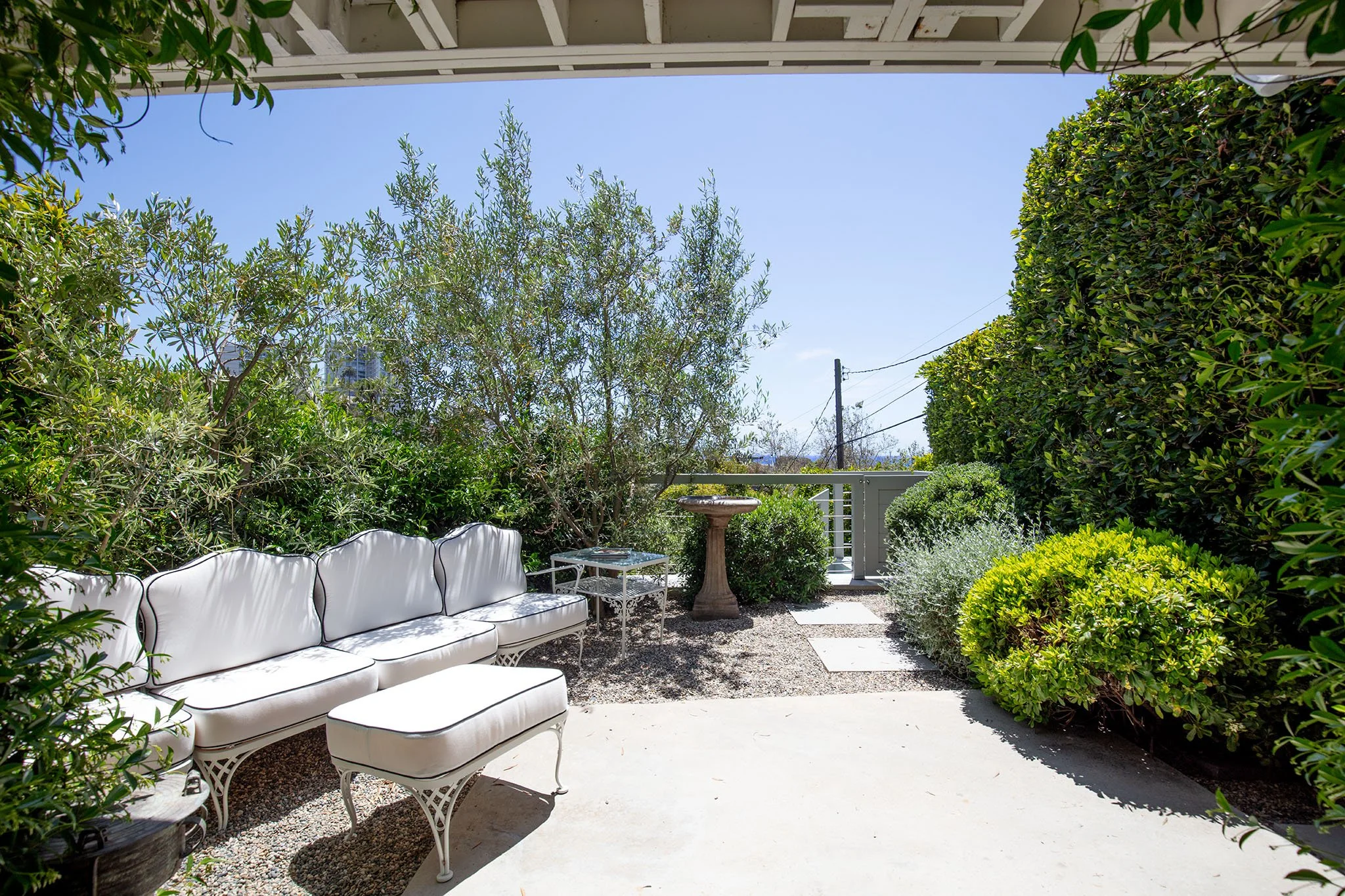 Extremely charming, extensively remodeled Seaside Traditional perched on a dramatic promontory site with spectacular, unobstructed ocean and canyon views from every room in desirable Santa Monica Canyon. Situated in close proximity to the beach and beloved neighborhood restaurants, this sun-filled gem is the former home of acclaimed and widely published designer Jeffrey Alan Marks who remodeled the home with great taste, quality and captivating aesthetic with equal parts formal English home and California beach cottage. Since then, the current owner has thoughtfully enhanced the interiors with additional aesthetic updates, further refining the home’s charm and individuality while maintaining the essence of Marks’ original vision. Vaulted wide planked ceilings, tongue and groove paneling, two fireplaces, extensive built-ins, French doors throughout and wonderful surprises at every turn. Welcoming, private courtyard entry leads to open living & dining areas and fabulous cook’s kitchen which are all flooded in natural light and open to the outdoors. There are two bedrooms, including a second floor primary suite with awe-inspiring views of the Santa Monica bay and the entire canyon, fireplace, sitting room/sunroom with built-in day-bed, hotel-like bath and large fitted walk-in closet. Attached guest cottage with separate entrance and private garden. Large street-to-street lot features lovely private gardens with various sitting areas and room for pool and/or ADU. Other features include a paneled butler’s pantry/bar and a direct-access private garage. Truly a one-of-a-kind jewel-box home offering the most extraordinary setting and very best California lifestyle!