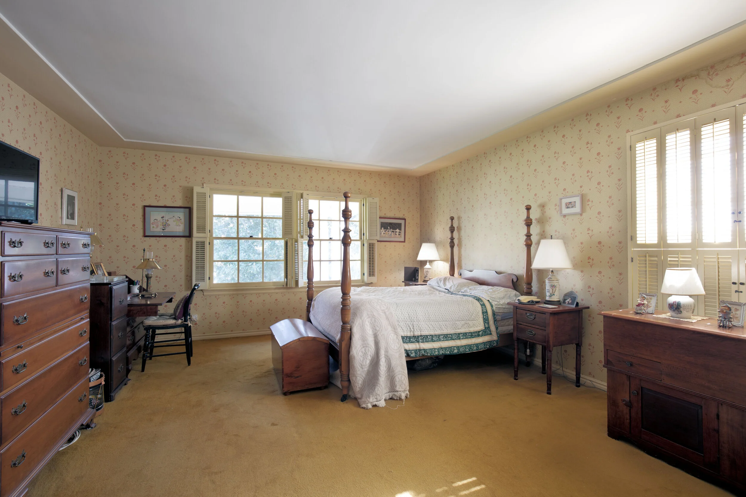 Stately 1949 Colonial set behind majestic, old growth trees on a sprawling, west facing lot in prime Brentwood Park. Situated between San Vicente and Sunset, this extraordinary property offers great privacy, yet is in close proximity to the Country Mart, the bike path and the shops and restaurants on San Vicente. Welcoming entry leads to well-detailed living room with radius bay window & fireplace, formal dining room and music room. Cozy den & family room each with fireplace overlook the pool and gardens. There are four bedrooms (two up and two down) all with en-suite bath, plus a powder room. Hardwood floors, crown mouldings, wainscoting, chair rail and other Traditional details add character and charm to this warm and inviting home. A rare opportunity to restore/remodel a timeless classic from a bygone era, or to build a magnificent estate in one of the Westside’s most coveted locations. Available for the first time in 45 years!