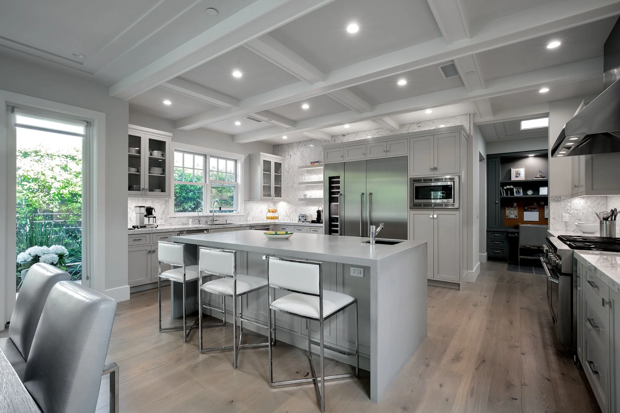 Pristine, recently built, beautifully designed and painstakingly executed single story Craftsman style bungalow in the very finest north-of-Montana Santa Monica location. Open floor plan, wonderful sense of space and light, clean Contemporary lines, exquisite materials and detailing, lovely gardens and ideal indoor/outdoor lifestyle. Welcoming front porch leads to generous formal entry, inviting office with wrap-around windows and cozy library with built-in bookshelves. Fabulous “great room” consisting of cook’s kitchen with every imaginable amenity, spacious dining area with French doors and large family room with vaulted ceilings, fireplace and accordion French doors opens to covered outdoor living room and lush, sun-filled, very private garden. Three bedrooms and three-and one-half baths, including a sumptuous owner’s suite with vaulted ceiling, lavish marble bath and two walk-in closets that also opens to patios and garden. Other spaces, amenities and features include a formal powder, large laundry room, direct access, oversized garage, temperature-controlled wine storage, multi-zone heating and air conditioning and solar electric system. Gorgeous French oak floors, extensive millwork, furniture grade cabinetry and beautiful finishes and materials throughout. Situated on the desirable, sunny, West side of a quiet, non-through, tree-lined street, near Montana Ave shopping, the beach, the Brentwood Country Mart and Franklin Elementary School. Conceived from scratch by the current owners for themselves, this timeless single level home offers the warmth and character of a classic older home yet possesses the floor plan, spaces, volume, features and fresh Contemporary feel of a newer home. A truly rare offering for the most discriminating buyer.