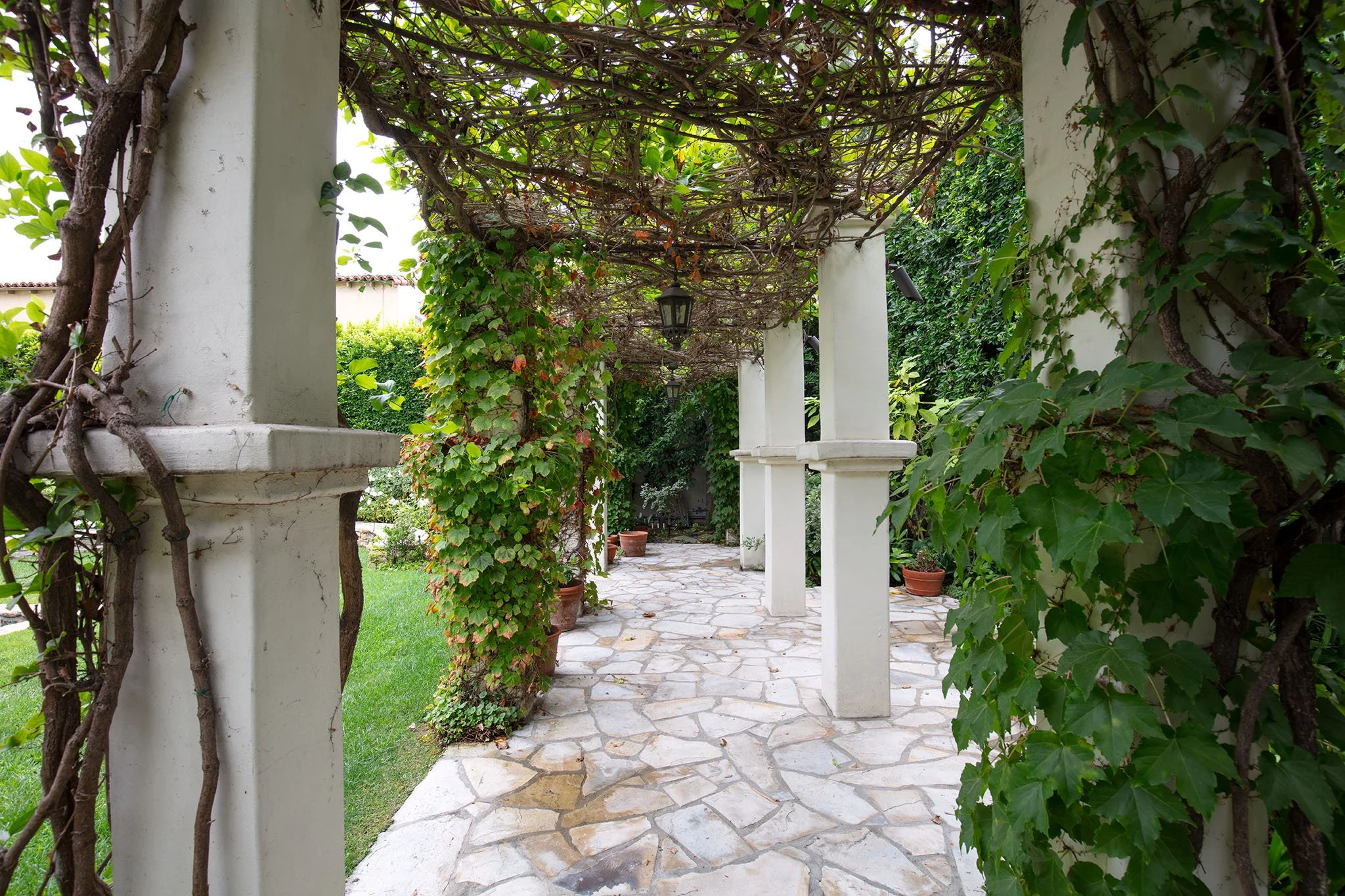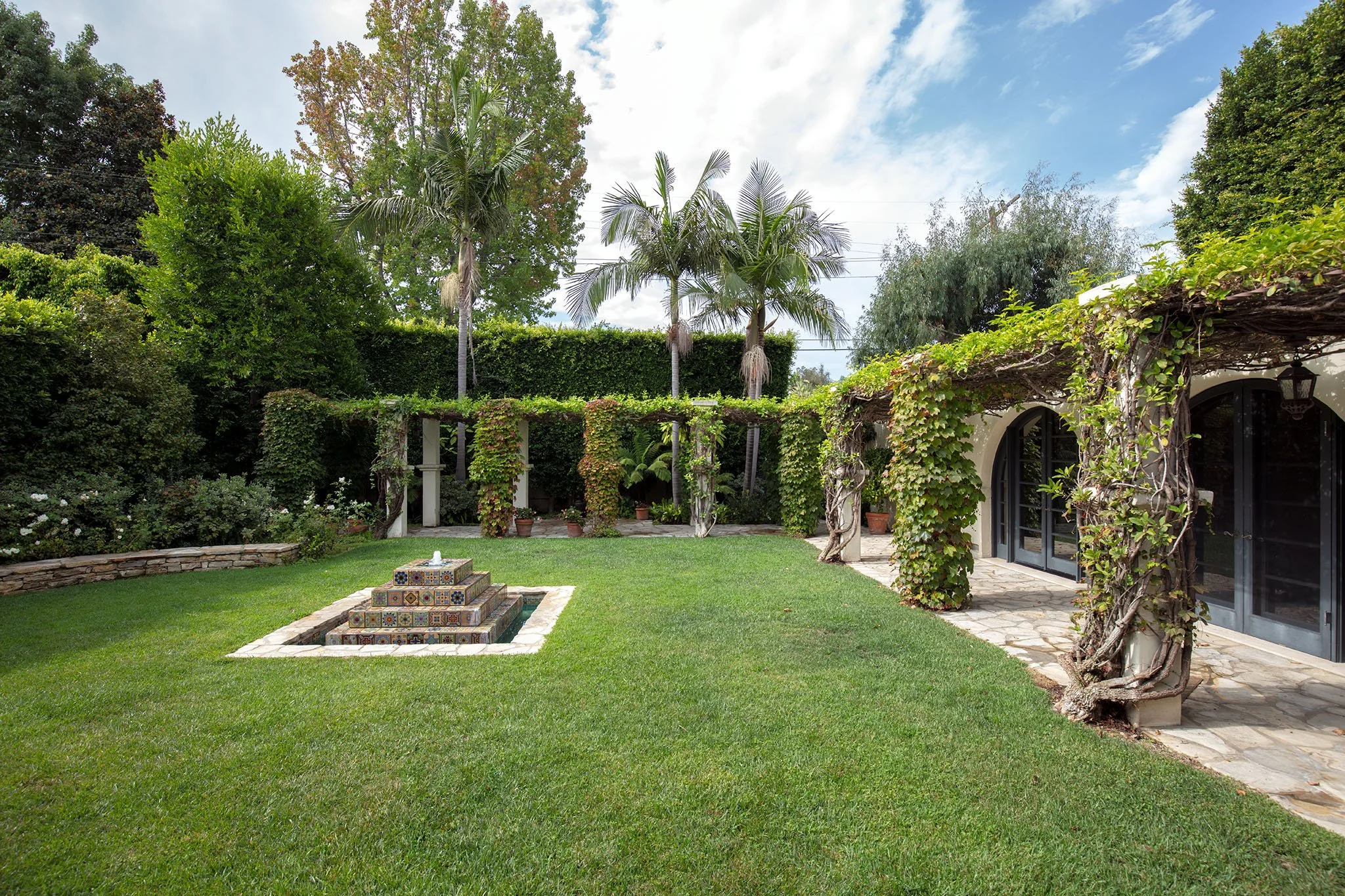 Walled and gated 1926 Spanish on extremely desirable Walden Drive in prime west end Beverly Hills flats. Filled with romance and charm at every turn, this classic home has been tastefully remodeled while preserving the integrity of the original early California architecture. Much-admired street presence, private courtyard entry with fountain, exceptional detailing and gorgeous gardens throughout. All the signature elements of the period can be found here including thick plaster walls, arched openings, French doors, beamed ceilings, hardwood & Saltillo tiled floors and original hardware, fixtures, ironwork, stained glass and paneled doors. Grand scale living room with exquisite wood beamed ceiling and large hearth, beautifully proportioned formal dining room, remodeled kitchen with adjacent breakfast room, inviting library/den and large family room—all of which open through French doors to courtyard, trellis-covered patios and lush yard. Fabulous primary suite with sitting area, generous bath and fitted closets. Two additional bedrooms upstairs, each with bath; and potential fourth bedroom downstairs. Other amenities include an oversized, direct access private garage and elevator. Available immediately, unfurnished, ideally for one year. A special offering in the very best Beverly Hills locale.