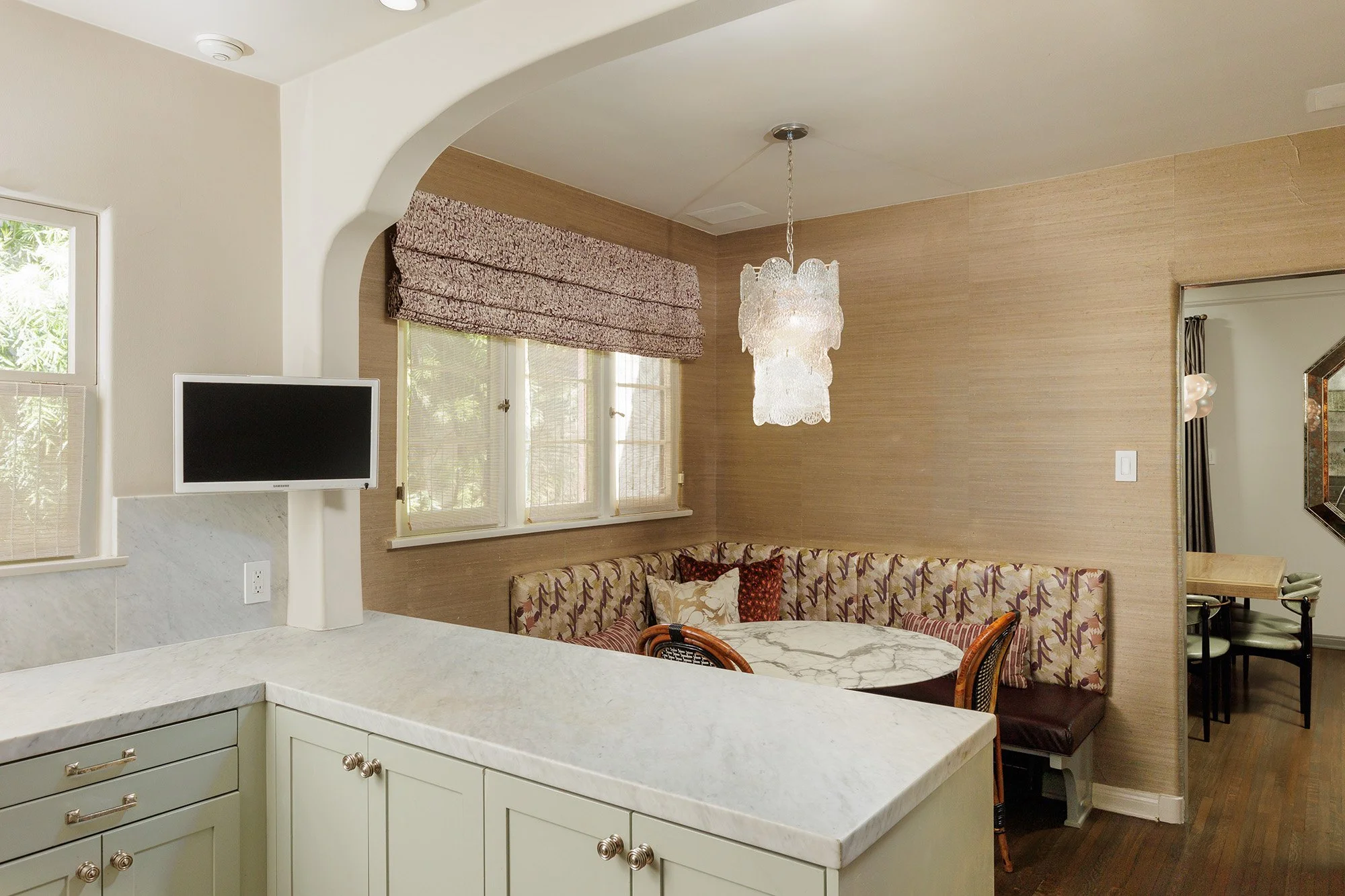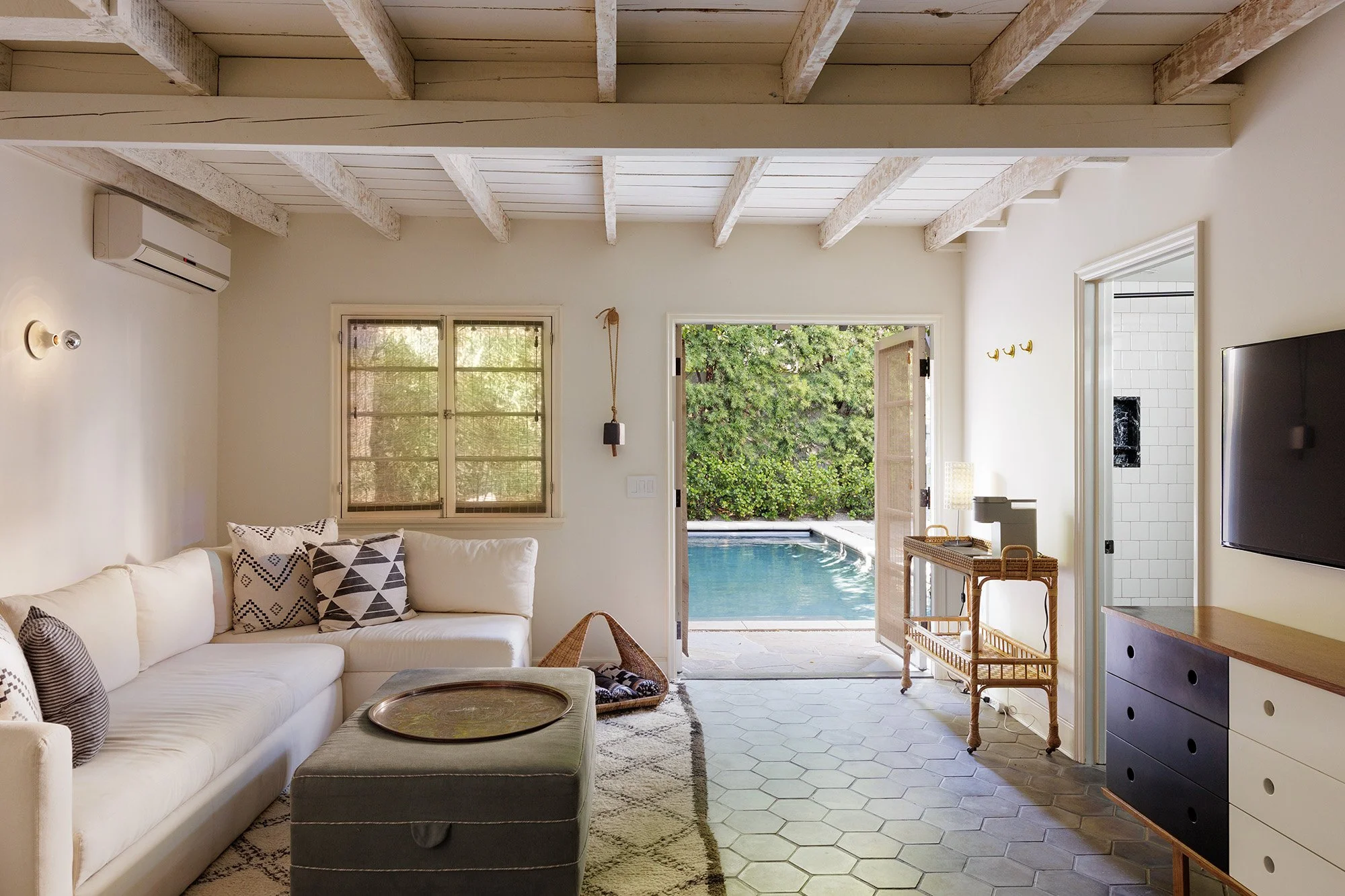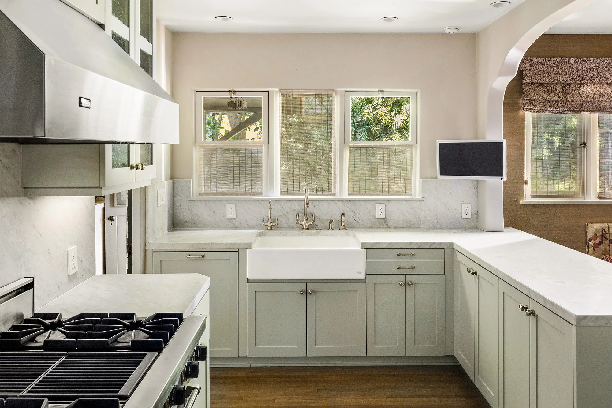 Walled, gated, and hedged classic 1928 Spanish home on coveted Orlando Avenue, providing privacy and comfort in an A+ location. Beautifully maintained and sensitively restored, the home blends numerous original elements with thoughtful modern upgrades, creating a stylish setting for both relaxed and gracious living. Authentic architectural details include re-finished hardwood floors, distinctive archways, large French windows & doors, and rich period accents, comingling with bold designer touches including custom window coverings, innovative paint, graphic wall coverings, premium lighting & quality built-ins. The large foyer with over-sized hexagon globes and striking framed accent wall provides a central opening to all public rooms, including a step-down living room with high ceiling & fireplace, a dramatic formal dining room with coved ceiling & antique mirrored accents, and a cheerful library/study. The warm, renovated kitchen with custom cabinets, marble counter-tops, and Viking & Sub-zero appliances is further enhanced by a cozy, built-in banquette for casual meals. 3 beds + 3.5 baths, including a large, light infused primary suite with multiple closets, and a spacious bath featuring a unique stainless vanity, freestanding tub, stall shower, and marble & tile accents. A large laundry room adjacent to the kitchen, and a powder bath equipped with skylight complete the interiors of the home. The detached garage converted by a previous owner, includes a luxe bath with huge shower, enormous storage closet, and an ideal flexible space suitable for use as an office, gym, or poolside cabana. The remarkable outdoor areas include a lush rear yard with a swimming pool and lounging deck, as well as front & side yards comprised of a flat lawn, multiple porches, an open dining patio, and tranquil sitting areas. Secure parking for multiple cars. Conveniently located less than a block to Melrose Place and the trendy shops & restaurants along Melrose Avenue & La Cienega. Create your own sublime lifestyle... coffee at The Alfred, shopping at the new Gucci Boutique, Sunday morning visits to the Farmers Market. For the buyer seeking a true oasis in the city. This one is a gem.