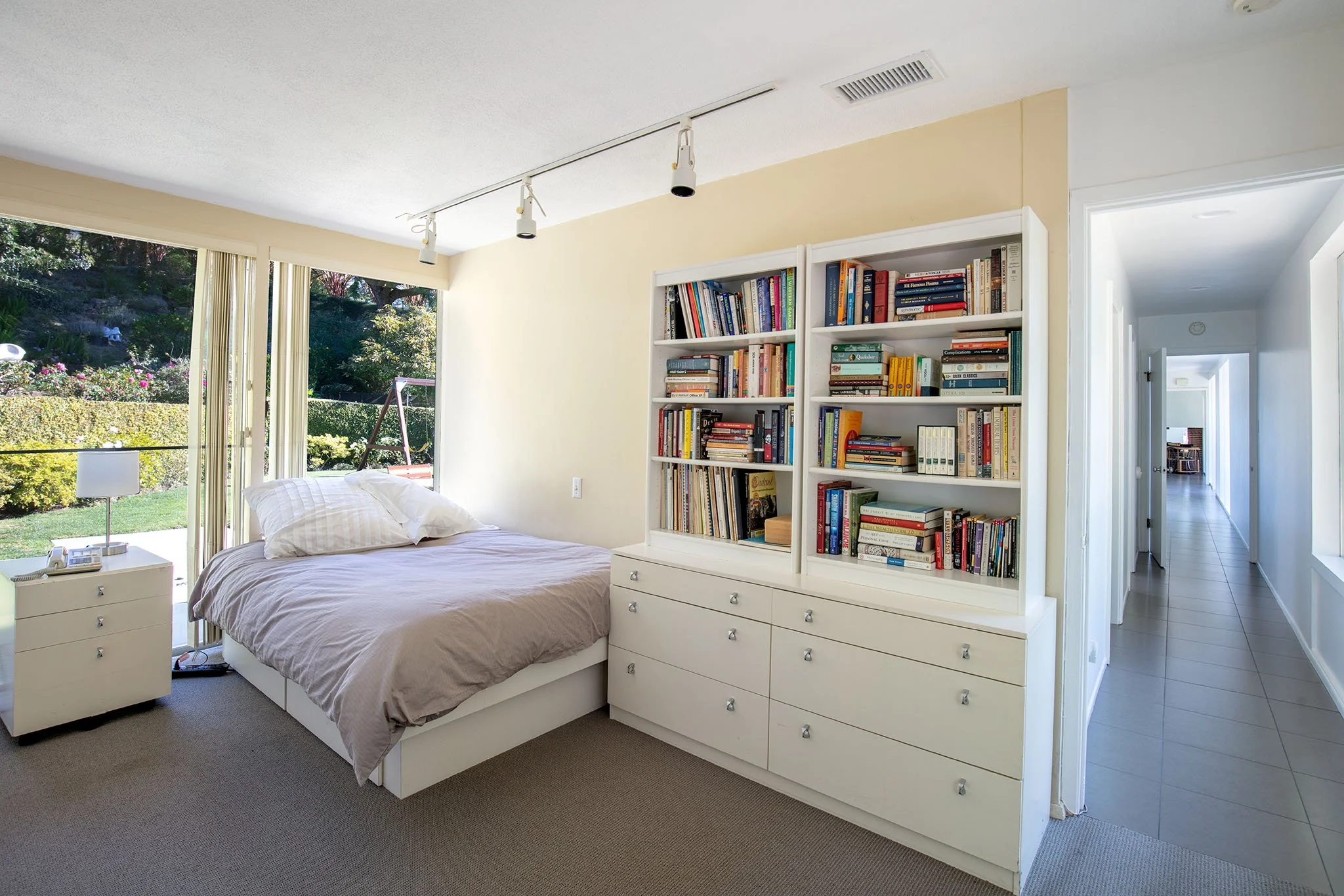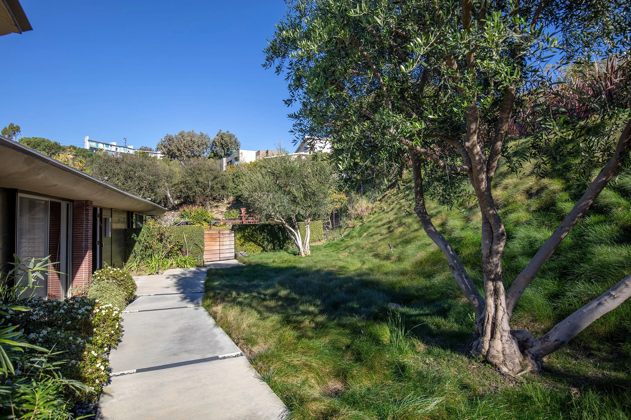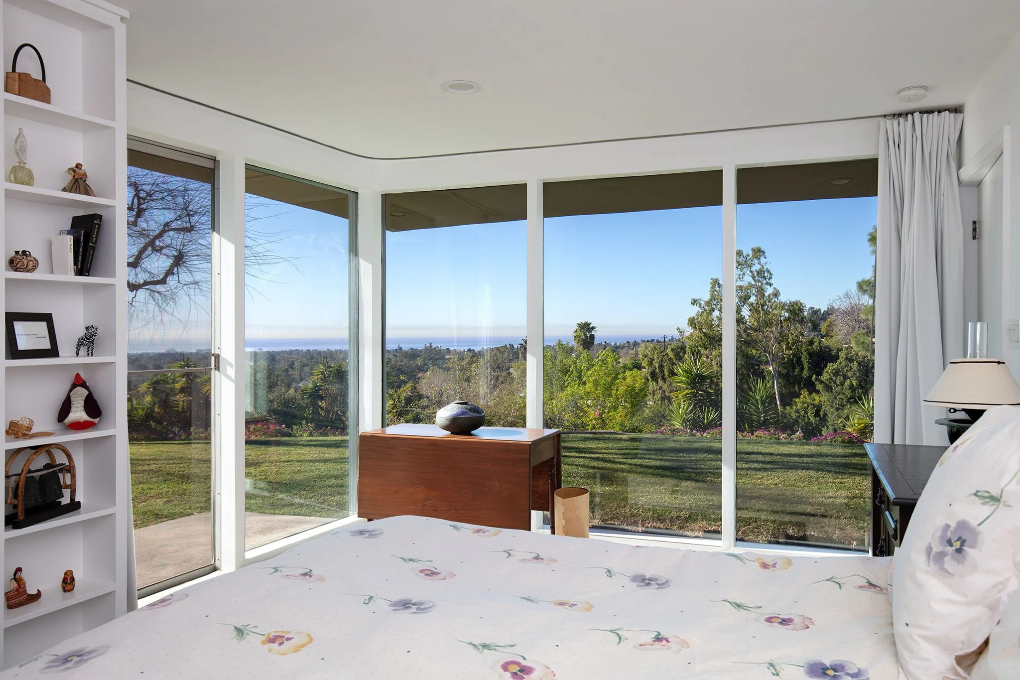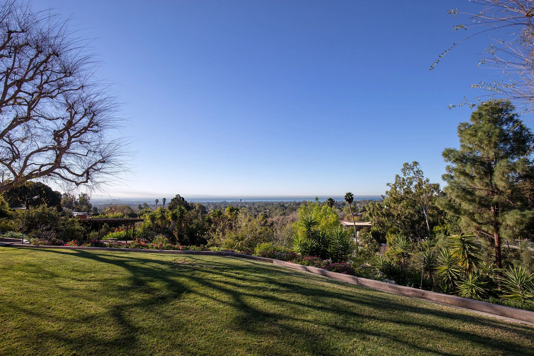 One of the most spectacular view properties on the entire Westside of Los Angeles! Wood and glass single story Mid-century modern on an awe-inspiring one acre plus (44,870 Sq Ft per assessor’s map), tree-filled lot with large flat pad and approximately 275 feet of frontage overlooking wide open, unobstructed, head-on ocean views spanning from Catalina Island and Palos Verdes across the entire Santa Monica Bay towards Malibu. Open plan, clean lines, walls of glass, gorgeous resort-like setting and ideal indoor/outdoor lifestyle with all rooms opening to views and gardens in front and back of house. Living and dining areas with signature brick fireplace and remodeled cook’s kitchen all open to patios, grassy yard and views. Four bedrooms, three baths plus office and den areas. Available for the first time in over 50 years, this lovingly maintained home provides a rare opportunity to restore or expand a classic piece of architecture; or to build a magnificent estate with expansive yard and jaw-dropping views in a fantastic Westside location surrounded by major estate properties. Truly one of a kind!