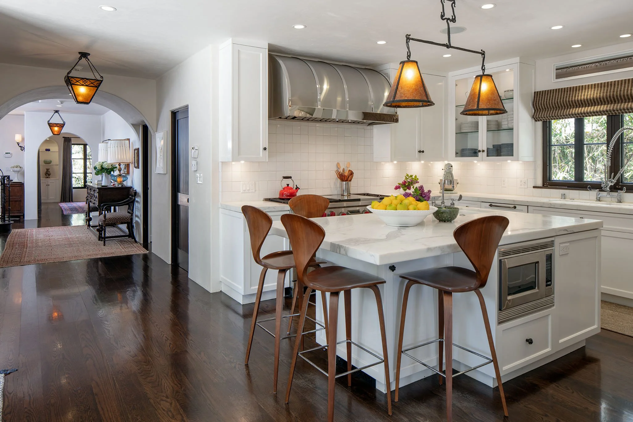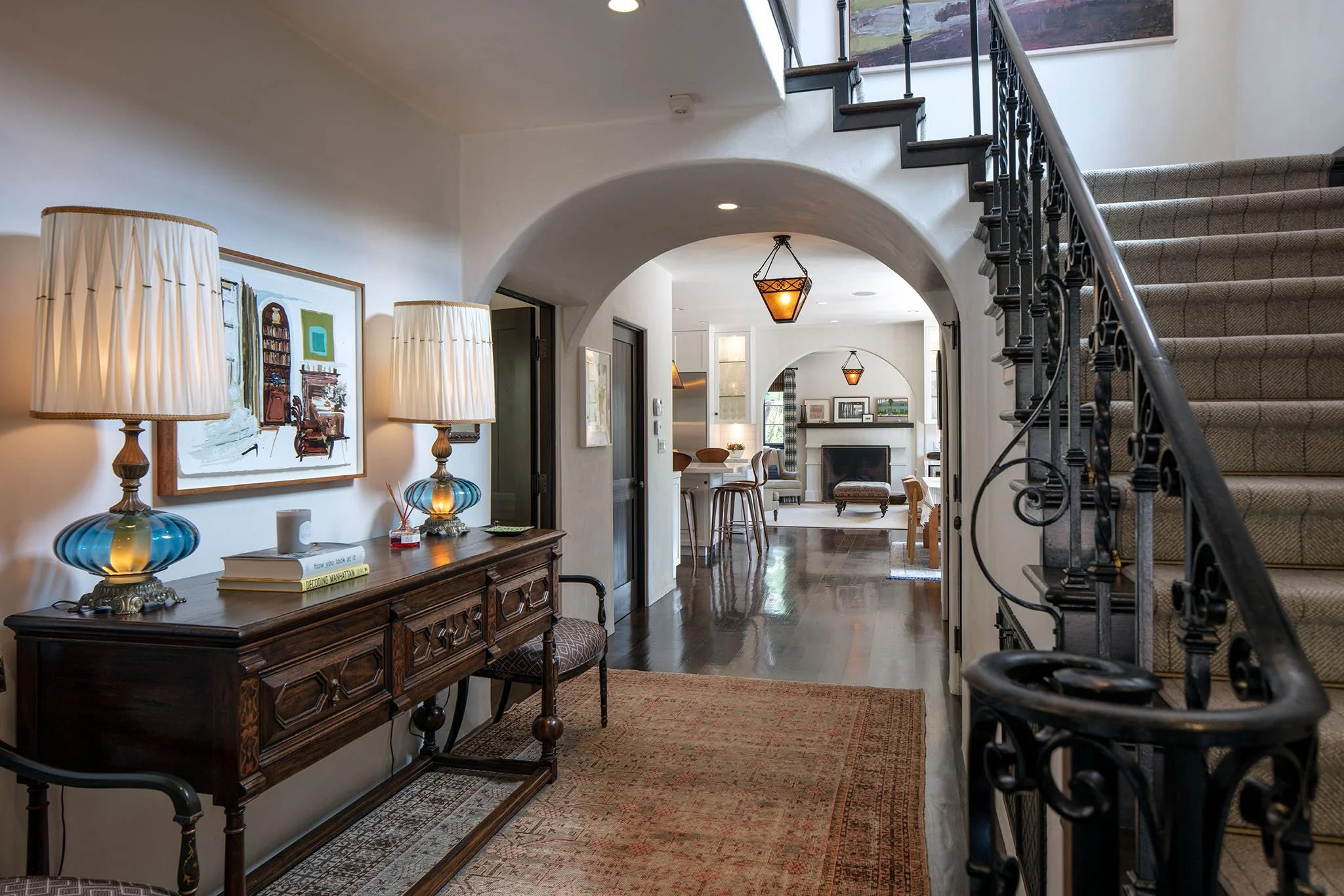Beautifully restored, remodeled and expanded Classic 1928 Spanish on 12,250 Sq Ft of all usable land with gorgeous vistas and city light views at the crest of a quiet and secluded street in the Little Holmby neighborhood of Westwood. Completed with great taste, quality and attention to detail, this pristine home retains the authenticity, charm and character of the original Spanish architecture, yet possesses the open floor plan, light-filled spaces, clean lines, amenities, and indoor/outdoor lifestyle of a new home. A private courtyard entry with fountain leads to a generous step-down living room with vaulted timber beam ceiling and fireplace, adjacent sun room with French doors and inviting formal dining room that opens to the courtyard. Fabulous cook’s kitchen, sunny breakfast room and family room with fireplace all open to large, resort-like yard with covered and open patios, lawn, pool/spa, separate sitting area with firepit and captivating views. Four bedrooms, four and one half baths including a fabulous owner’s suite with vaulted ceiling, fireplace, private covered terrace, marble bath and two walk-in closets. Hardwood floors, extensive woodwork and built-ins, period hardware & fixtures and tasteful finishes throughout. Gated driveway, oversized two-car garage with plenty of room for storage, upstairs laundry room and very compelling permitted plans for a detached two story structure tucked behind the garage consisting of ADU/guest room and gym. An extremely rare offering filled with romance and charm at every turn in a most desirable and central location. Warner School district.